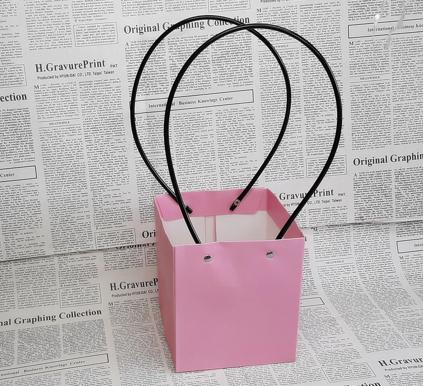Коробка- сумка для цветов (1 шт , 18х16х15 см)Цвет розовый