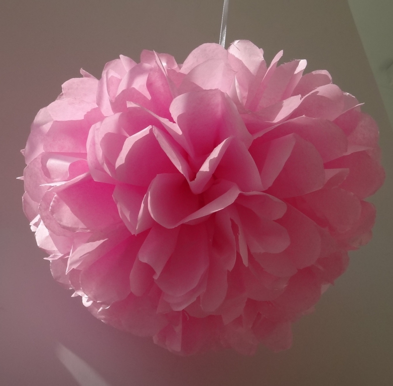 Розовый помпон 23 см . Приятно украсит Ваш праздник .
